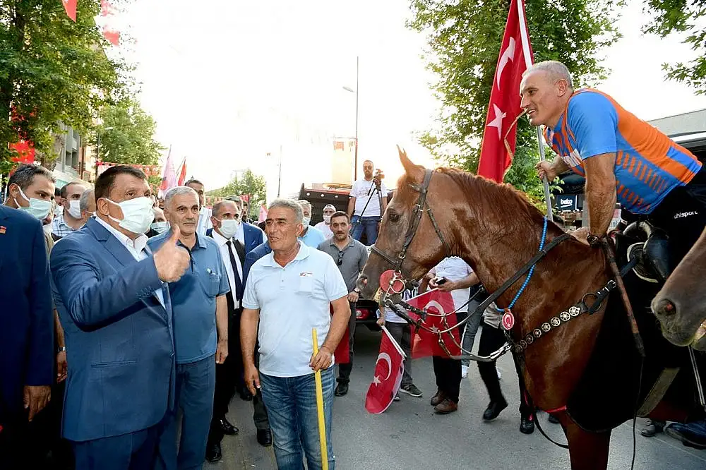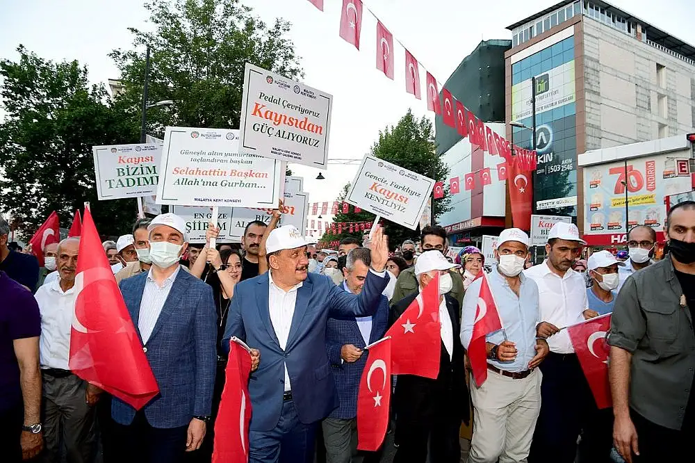 Renkli görüntülerin yaşandığı kortej yürüyüşüne Malatya Büyükşehir Belediye Başkanı Selahattin Gürkan, torunlarıyla birlikte kortejde yer alırken, Malatyalılar da yoğun ilgi gösterdi. Büyükşehir Belediyesi Mehteran Takımının çaldığı marşlar eşliğinde Türk Bayrakları ile gerçekleştirilen kortej yürüyüşünün yapıldığı alanda vatandaşlar evlerinin balkonlarına çıkarak kortej yürüyüşüne alkışlarla destek verdi. Halk oyunları ekiplerinin halaylarla eşlik ettiği kortej yürüyüşüne, çok sayıda sporcu ile birlikte Yazıhan Atlı Cirit ekibi de katılarak renkli görüntüler yaşattı.