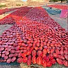 Malatya'nın Kuluncak ilçesine bağlı Kaynarca Mahallesi'nde doğal yöntemlerle yapılan kurutmalıklar mahalleyi kırmızıya bürüdü.
