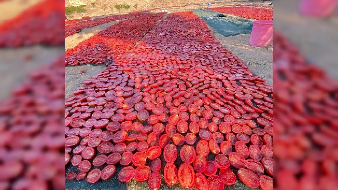 Malatya’nın Kuluncak ilçesine bağlı Kaynarca Mahallesi’nde doğal yöntemlerle yapılan kurutmalıklar mahalleyi kırmızıya bürüdü.