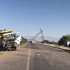 Kaza sonrası yola devrilen yüksek gerilim hattı direği trafiği kilitledi