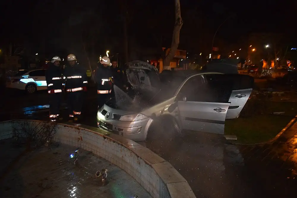 Bu sırada araçta yangın çıktı. İhbar üzerine olay yerine gelen itfaiye ekipleri yangını kısa sürede kontrol altına alarak söndürdü.