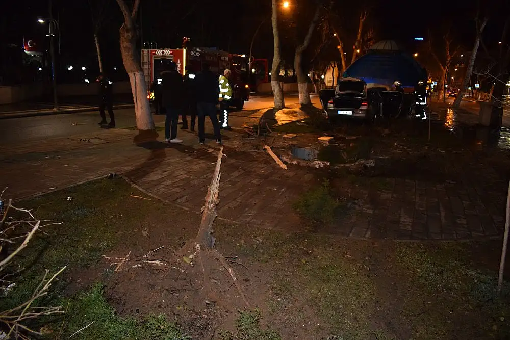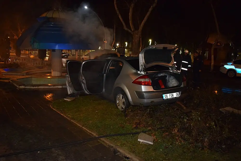 Edinilen bilgilere göre, Mehmet Buyruk Caddesi istikametinden gelerek Kışla Caddesi istikametine seyir halinde olan F.S. (24) idaresindeki 06 FSN 06 plakalı otomobil sürücüsünün direksiyon hakimiyetini kaybetmesi sonucu kontrolden çıkarak refüjde bulunan iki ağacı yerinden söktükten sonra süs havuzuna çarparak durabildi.