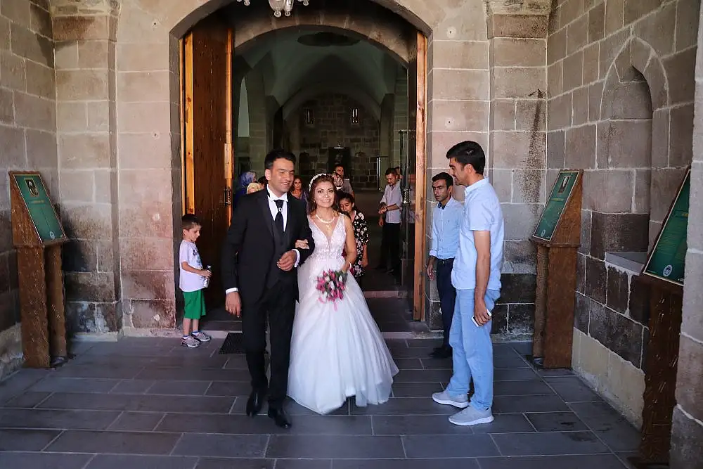 Yeni evli çiftler fotoğraf çekimi için kervansarayı tercih ediyor.