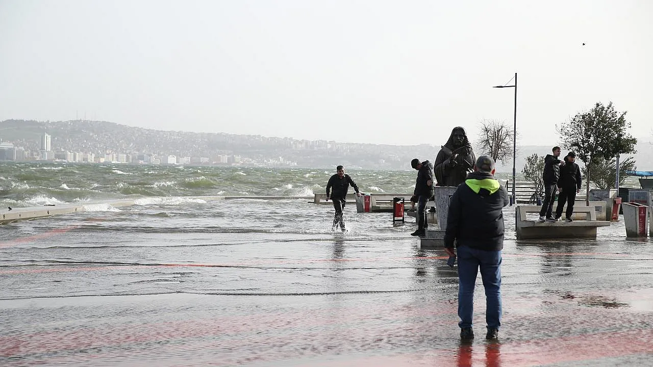 İzmir'in kıyı şeridinde etkili olan şiddetli fırtına, deniz taşkınlarına neden olarak günlük yaşamı durma noktasına getirdi. Özellikle Karşıyaka ve Konak ilçelerinde yükselen deniz suları karaya ulaşırken, ana arterler ve ara sokaklar su altında kaldı.