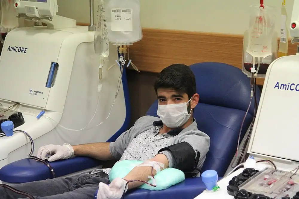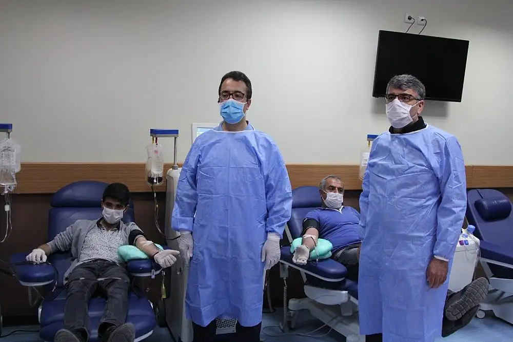 Kovid-19 tanısı konulan 46 yaşındaki Gıyasettin B. ile oğlu 19 yaşındaki Semih B'nin tedavisi tamamlanarak, sağlıklarına kavuştu. Daha önce plazma bağışlayan ve Türkiye’deki ilk plazma bağışçısı olan baba ve hastalığı yenen oğlu, koronavirüs hastalarına umut olan immün plazma tedavi yöntemi için plazma bağışında bulundu.
