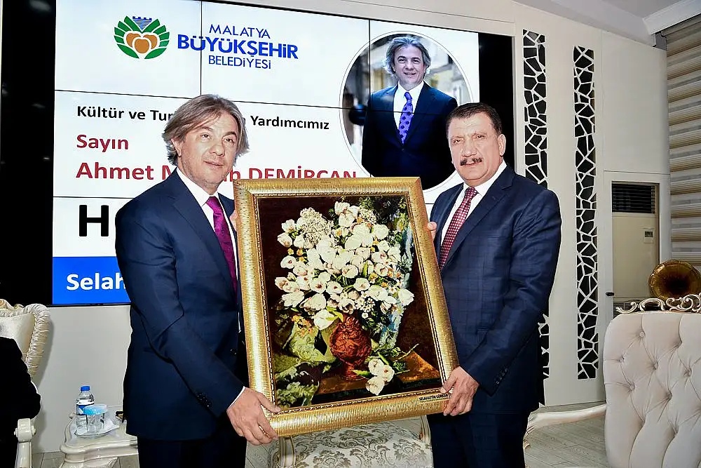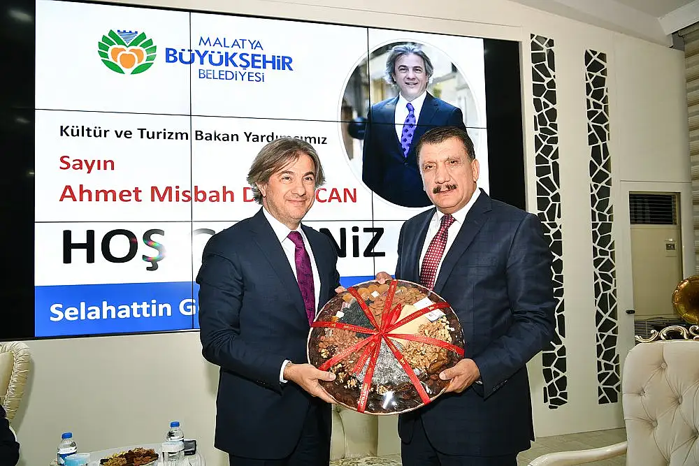 9'uncu Malatya Uluslararası Film Festivali Kapanış Programına katılmak üzere ilimize gelen Kültür ve Turizm Bakan Yardımcısı Ahmet Misbah Demircan, Malatya Valisi Aydın Baruş ile birlikte Büyükşehir Belediye Başkanı Selahattin Gürkan'ı da makamında ziyaret ederek bir süre görüştü.