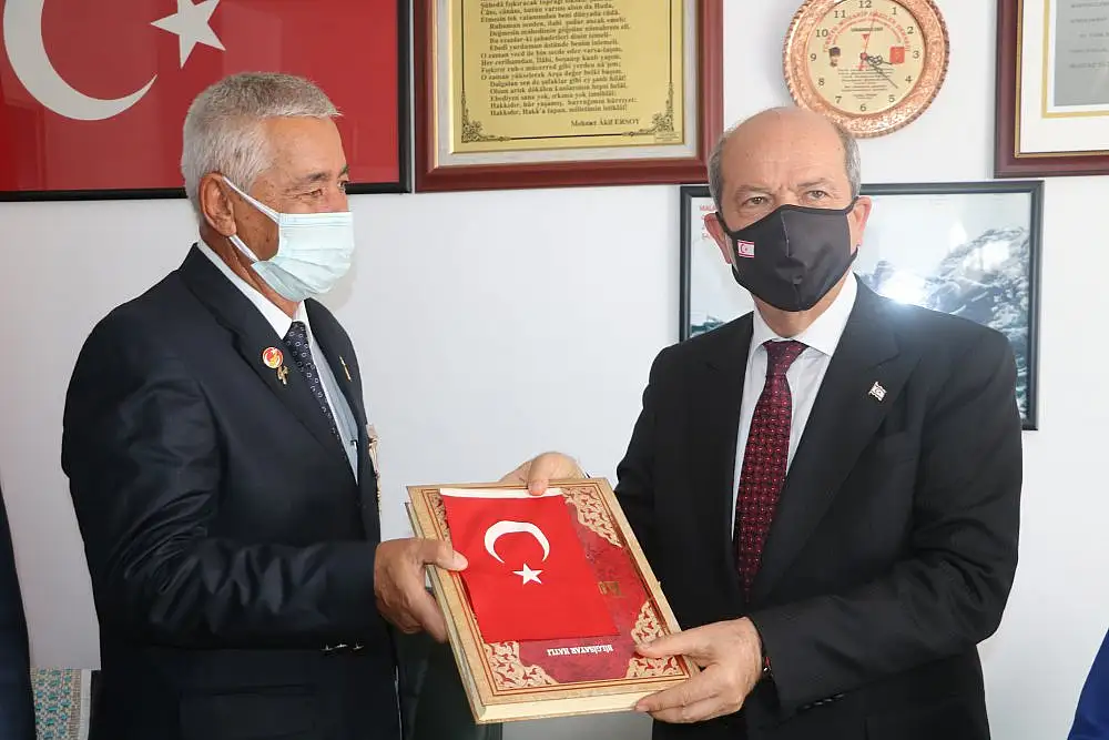 Görüşme esnasında açıklamalarda bulunan Cumhurbaşkanı Tatar, Kıbrıs Gazilerinin Barış Harekatı’nda verdikleri mücadeleden övgüyle bahsederek, “KKTC’den Malatya’mıza sevgi ve saygılarımızı getirdim. Kıbrıs Türk halkı adına sizlere en kalbi duygularımla muhabbetlerimi iletmek istiyorum. Özellikle Kıbrıs gazileri, çok önemlidir. 20 Temmuz 1974 sabahında Mehmetçik’in Kıbrıs’a adım atmasıyla Kıbrıs Türk’ü özgürlüğüne ve bağımsızlığına kavuşmuştur. O günden bugüne Kıbrıs’ta barış vardır ve o barışın güvenliği içerisinde Kıbrıs Türk halkı da kendi devletinin çatısı altında orada hür ve özgür yaşamaktadır. Bunu biz tabi ki Türkiyemizin hükümetlerine, devlet büyüklerine ve aynı zamanda Kıbrıs Gazilerine borçluyuz. Çünkü Kıbrıs Gazileri, Kıbrıs Barış Harekatı’nda büyük bir kahramanlık, büyük bir destan yazmak suretiyle daha önce bizim Mücahitlerimizin direnişini hep birlikte 20 Temmuz’un sabahında ve bilahare yaptıkları güzel çalışmalarla Kıbrıs’a barışı getirmişlerdir. Dolayısıyla sizlere minnettarım. Tüm Türkiye’de ki gazilerimize şükranlarımı iletmek istiyorum. Tabi ki aramızdan ayrılanlara ve şehitlerimize rahmet diliyorum. Yaşayan gazilerimize de sağlık ve afiyet diliyorum. Sizler her zaman bizim gönlümüzdesiniz. Sizler bizim gönlümüze taht kurmuş tursunuz” dedi.