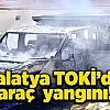 Malatya Akçadağ ilçesinde bulunan Kırsal Köy Konutları TOKİ şantiyesinde malzeme taşıyan açık kasa minibüs bir anda alev aldı.