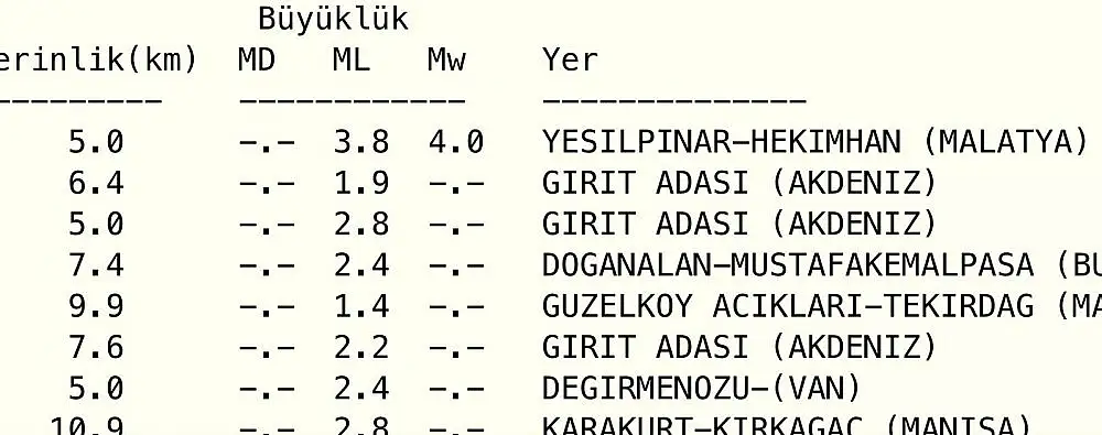 Kandilli Rasathanesinin internet sitesinde yer alan bilgiye göre, 08.33’de merkez üssü Malatya’nın Hekimhan ilçesi Yeşilpınar olan 4,1 büyüklüğünde yer sarsıntısı kaydedildi.