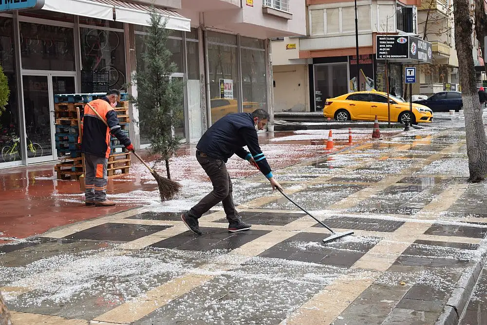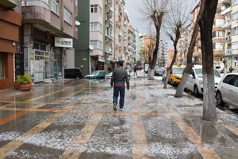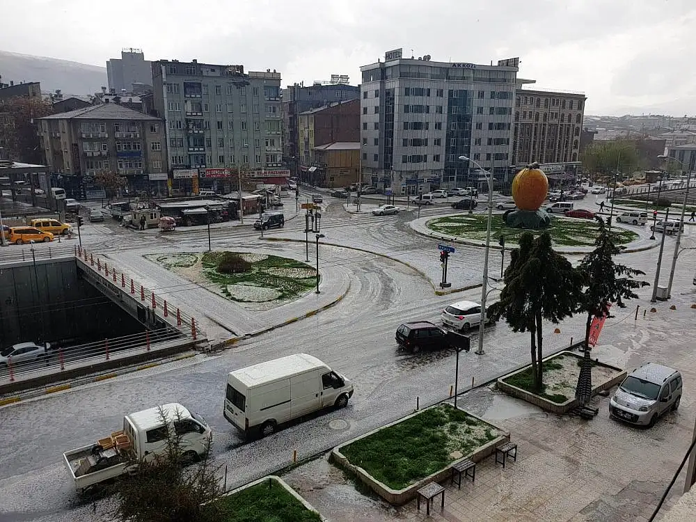 Malatya’da kent merkezinde sağanak yağış olarak başlayan yağış yerini kısa süre sonra dolu yağışına bıraktı. Yaklaşık 10 dakika yağan dolu yağışı ile birlikte her yer beyaza bürünürken, yollarda sular ile kaplandı.