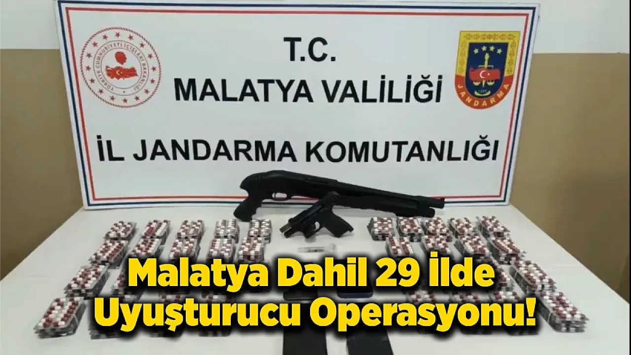 Malatya'nın da aralarında bulunduğu 29 ilde düzenlenen geniş çaplı operasyonlarda 1 tonun üzerinde uyuşturucu ve yüz binlerce hap ele geçirildi. 345 şüpheli hakkında adli süreç başlatıldı.