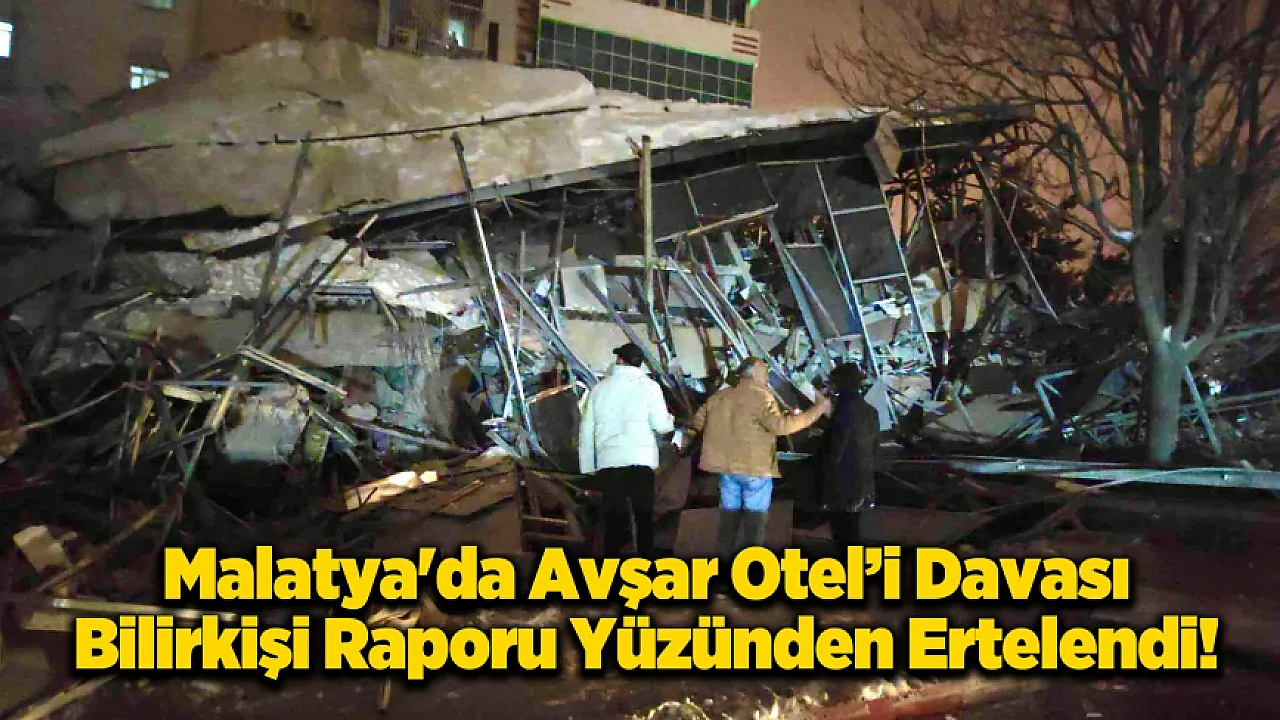6 Şubat 2023 tarihinde meydana gelen Kahramanmaraş merkezli ilk depremde Malatya'nın Battalgazi ilçesi Çavuşoğlu Mahallesi'nde yıkılan ve 16 kişinin yaşamını yitirdiği Avşar Otel'e ilişkin yargı süreci devam ediyor. Malatya 1. Ağır Ceza Mahkemesi'nde görülen son duruşmada, davanın seyri açısından kritik önem taşıyan bilirkişi raporunun beklenmesine karar verildi.