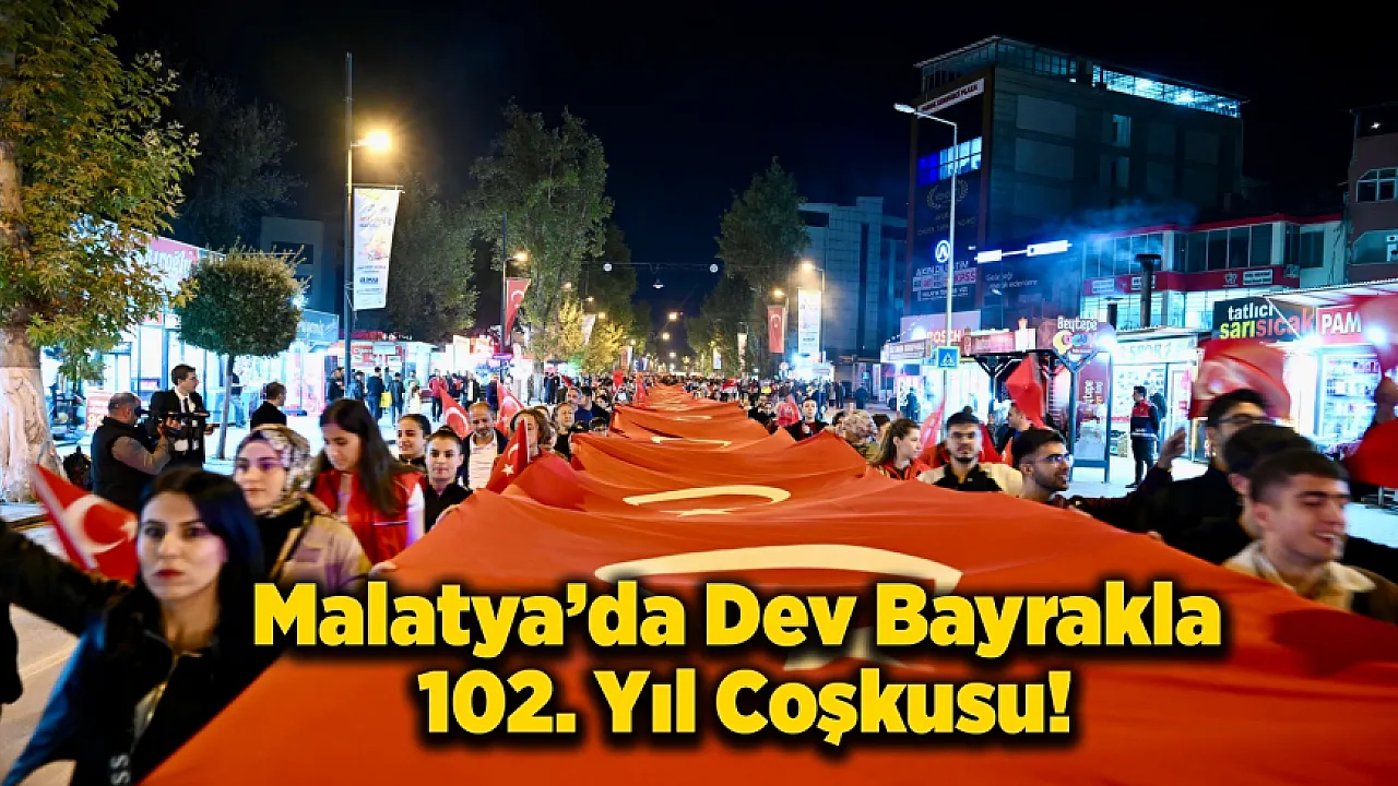 Malatya'da Cumhuriyet'in 102. Yıl dönümü kapsamında gerçekleştirilen etkinliklerde vatandaşlar, 70 metre uzunluğundaki dev Türk bayrağını taşıyarak kutlamalara eşlik etti. İnönü Caddesi'nde başlayan yürüyüşe 2. Ordu Bando Takımı eşlik etti, kortej boyunca coşku doruklara ulaştı.