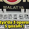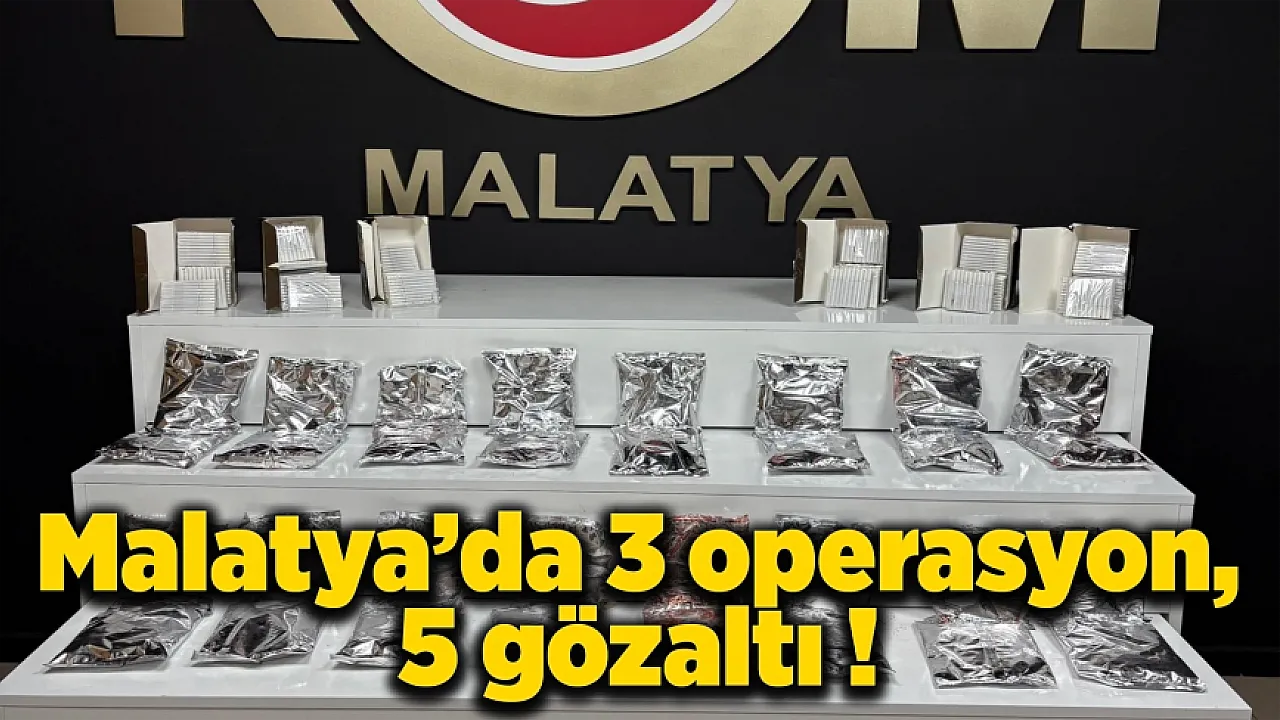 Malatya'da polis ekipleri tarafından gerçekleştirilen üç ayrı kaçakçılık operasyonunda çok sayıda kaçak ürün ele geçirildi. Operasyonlar kapsamında 5 şüpheli hakkında yasal işlem başlatıldı.