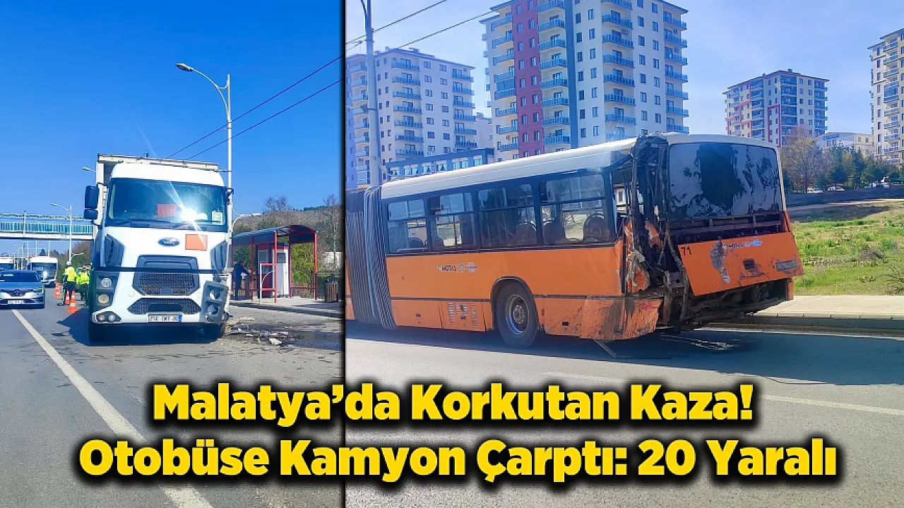 Malatya'da hafriyat kamyonunun belediyeye ait yolcu otobüsüne çarpması sonucu meydana gelen trafik kazasında 20 kişi yaralandı.