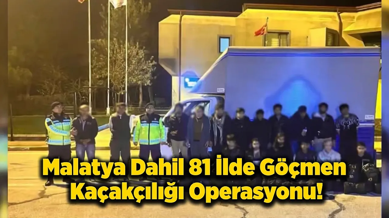 Malatya'nın da aralarında bulunduğu 81 ilde gerçekleştirilen geniş kapsamlı denetimlerde göçmen kaçakçılığı organizatörlerine darbe vuruldu. Operasyonlarda 55 organizatör gözaltına alınırken, 972 düzensiz göçmen belirlendi.