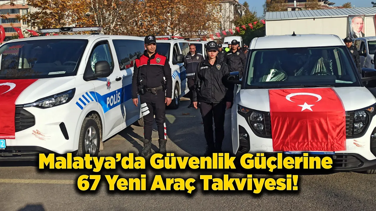 Malatya’da İl Emniyet Müdürlüğü ve İl Jandarma Komutanlığı envanterine kazandırılan 67 yeni araç, Emniyet Müdürlüğü yerleşkesinde düzenlenen törenle hizmete alındı. Araçların, Cumhurbaşkanı Recep Tayyip Erdoğan’ın katılımıyla 28 Kasım 2025’te İstanbul’da gerçekleştirilen törenin ardından Malatya’ya gönderildiği belirtildi.
