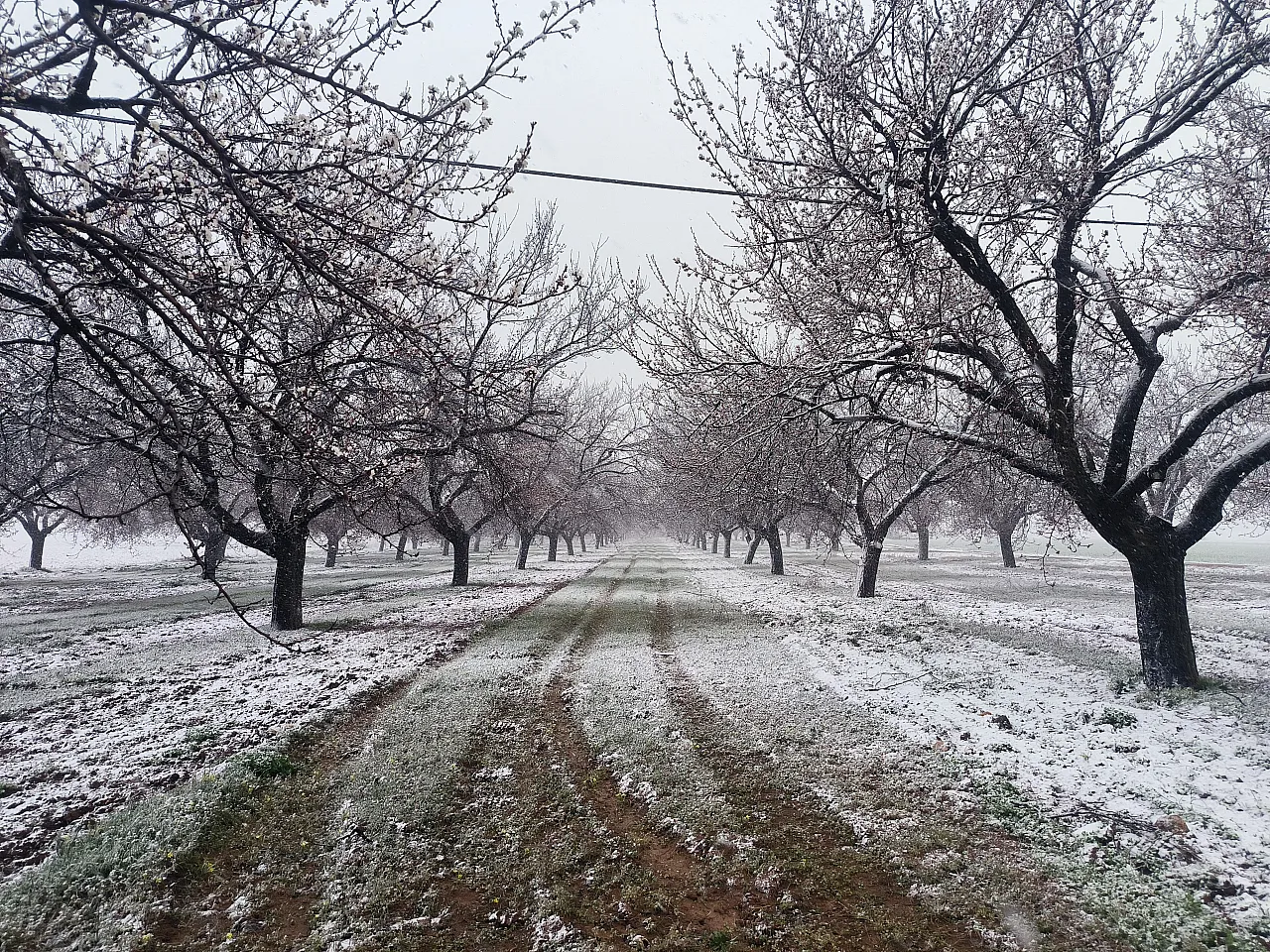- • Çiçek açan kayısı ağaçlarının karla kaplanması üzerine bazı üreticiler, don riskine karşı ağaçlarını naylonla örterek koruma altına aldı.