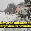 Malatya'da etkisini artıran yoğun kar yağışı ve beraberinde getirdiği gizli buzlanma, karayollarında tehlikeli anlara neden oluyor. Malatya-Kayseri (D-300) karayolu Darende ilçesi mevkiinde seyir halinde olan bir kargo aracı, hava muhalefeti nedeniyle kontrolden çıkarak yoldan çıktı.