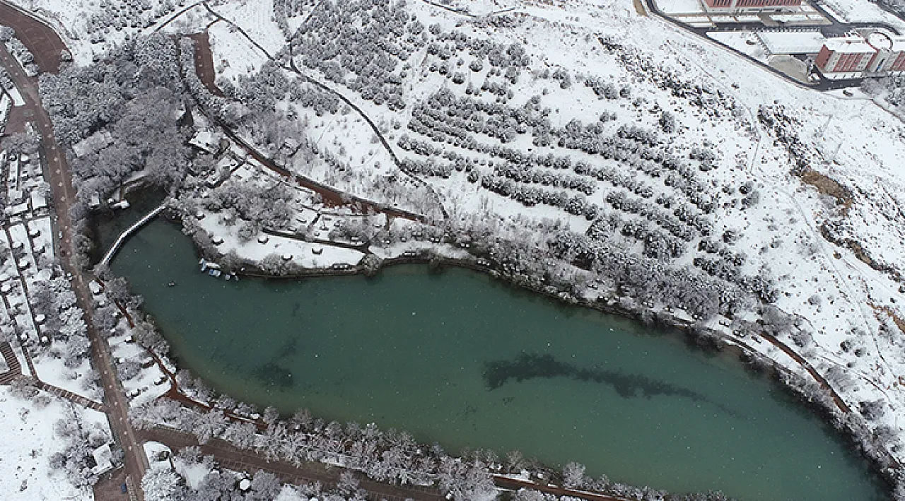 Yaz ve kış mevsimlerinde Malatyalıların uğrak mekanları arasında yer alan Turgut Özal Tabiat Parkı’ndaki bu değişim, dron yardımıyla kayıt altına alındı. Beyaz örtüyle kaplanan ağaçlar ve parkın genel görünümü, havadan çekilen görüntülerle karın oluşturduğu eşsiz estetiği gözler önüne serdi.