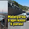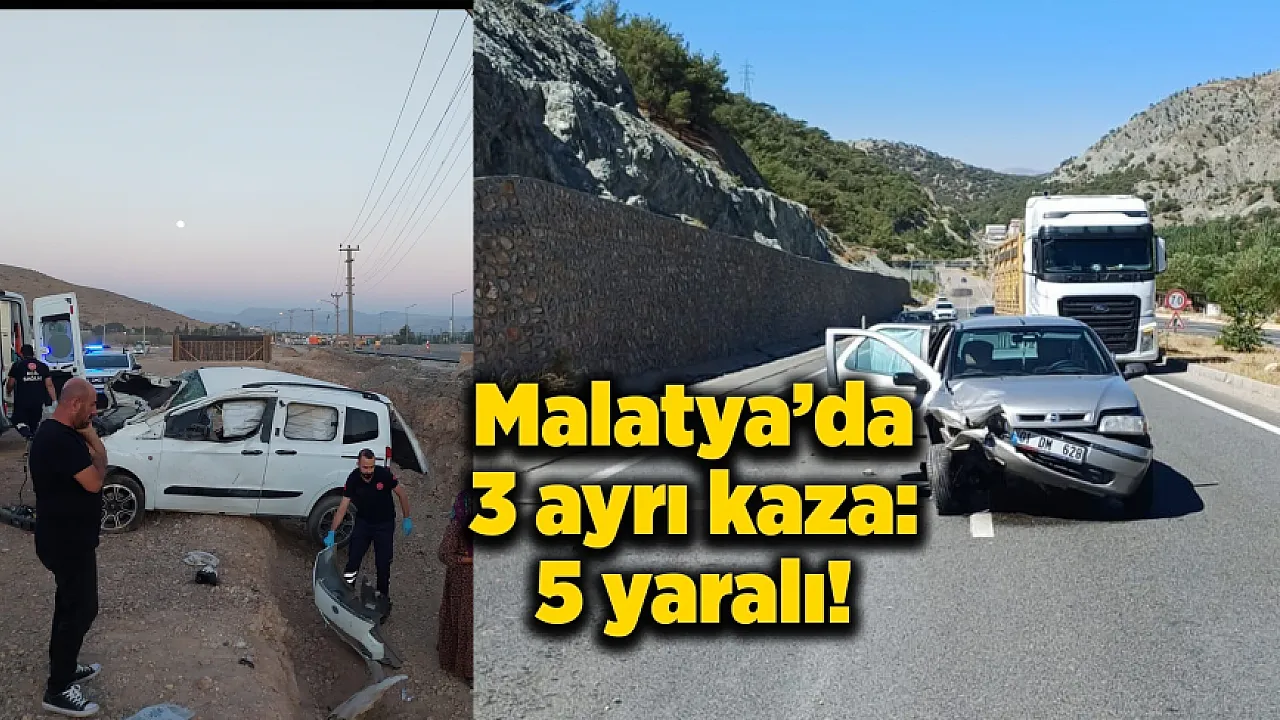 Malatya'da farklı noktalarda meydana gelen üç ayrı trafik kazası, toplamda 5 kişinin yaralanmasına sebep oldu. Yaralılar, olay yerine gelen ekipler tarafından hastanelere kaldırıldı.