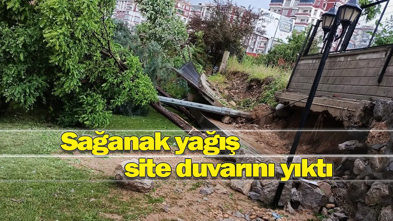 Malatya'da etkili olan sağanak yağış nedeniyle bir sitenin duvarı sel sularının etkisiyle yıkıldı.