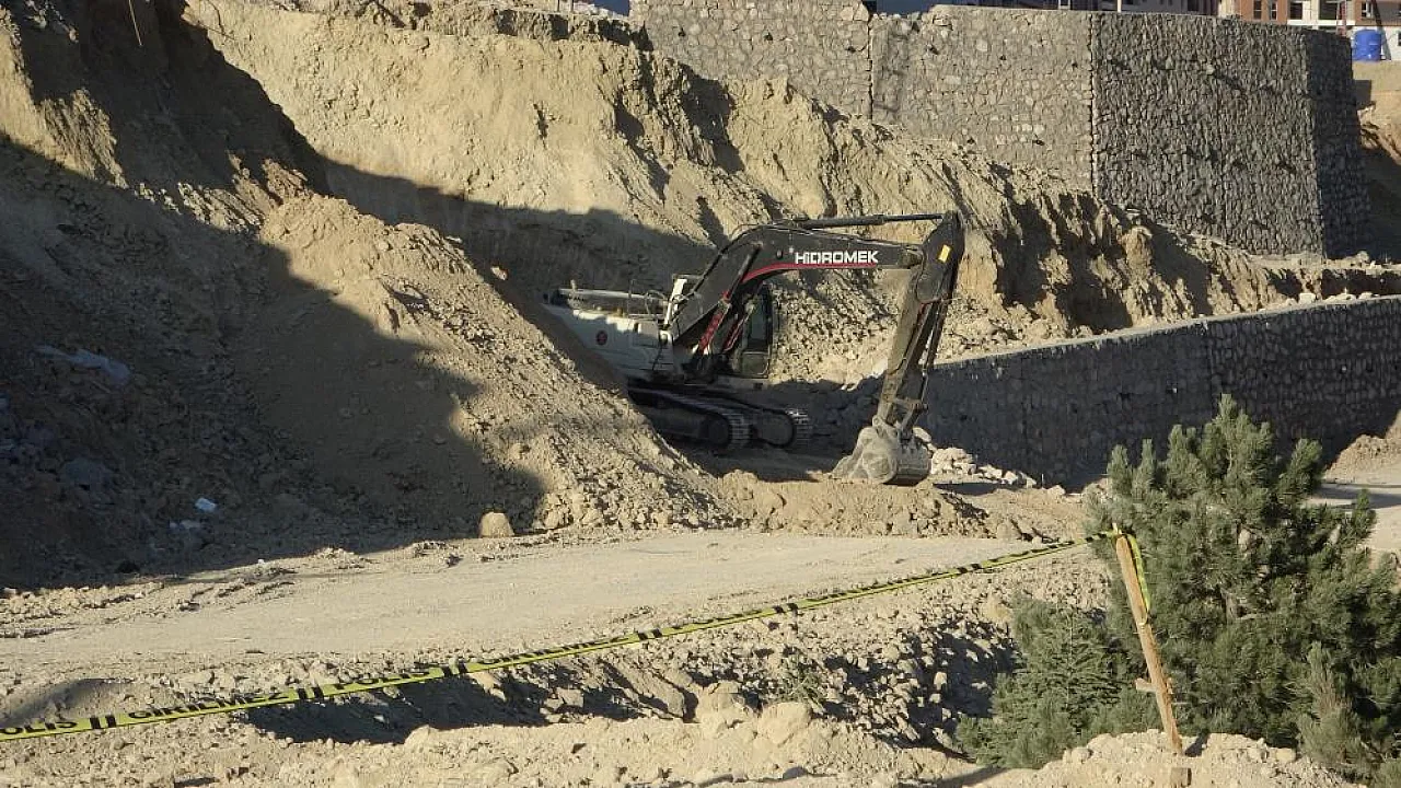 Malatya'nın Battalgazi ilçesinde bulunan bir şantiye alanında yapılan kazı çalışmaları sırasında top mermisi olduğu değerlendirilen askeri mühimmat bulundu.