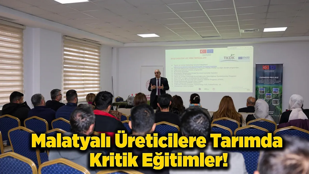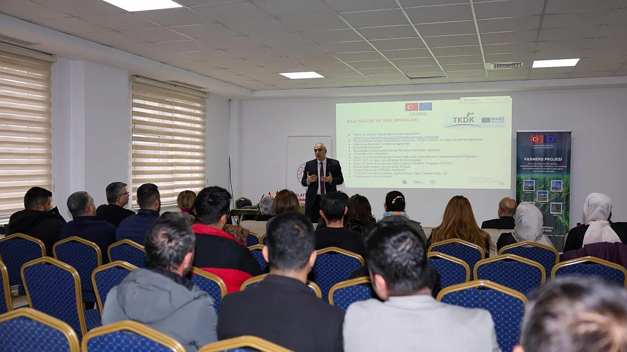 Depremden etkilenen illerde tarımsal üretimi desteklemek amacıyla yürütülen FARMERS Projesi kapsamında Malatya'da üreticilere üretim planlaması, finansmana erişim ve kuraklığa dayanıklı tarım konularında eğitim verildi.