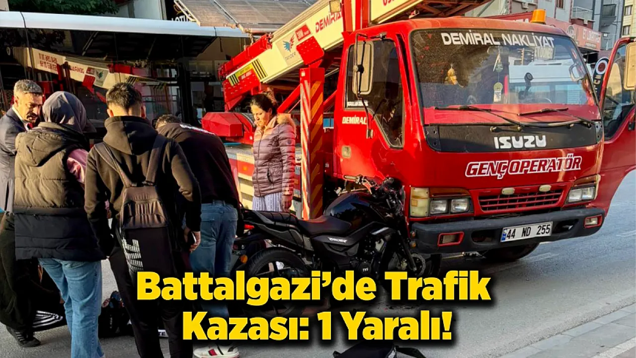 Malatya'nın Battalgazi ilçesinde sabah saatlerinde vinç ile motosikletin çarpışması sonucu yaralanmalı trafik kazası meydana geldi. Olay yerine sağlık ve polis ekipleri sevk edildi.