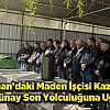 - • Malatya'nın Hekimhan ilçesinde maden işçilerini taşıyan servisin devrilmesi sonucu hayatını kaybeden Hamza Günay, Paşa Camisi'nde kılınan namazın ardından ilçe mezarlığına defnedildi.