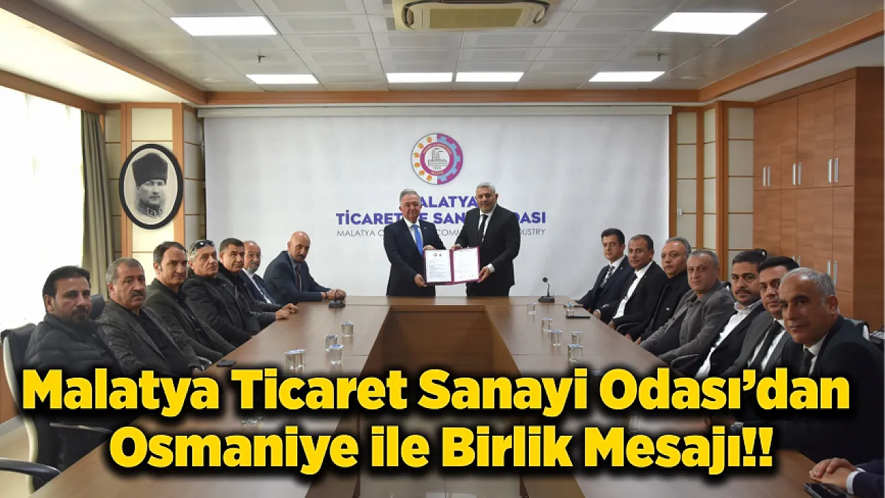 Malatya Ticaret ve Sanayi Odası ile Osmaniye Ticaret ve Sanayi Odası arasında kardeş oda protokolü imzalanarak iki şehir arasında ekonomik ve sosyal iş birliği güçlendirildi.
