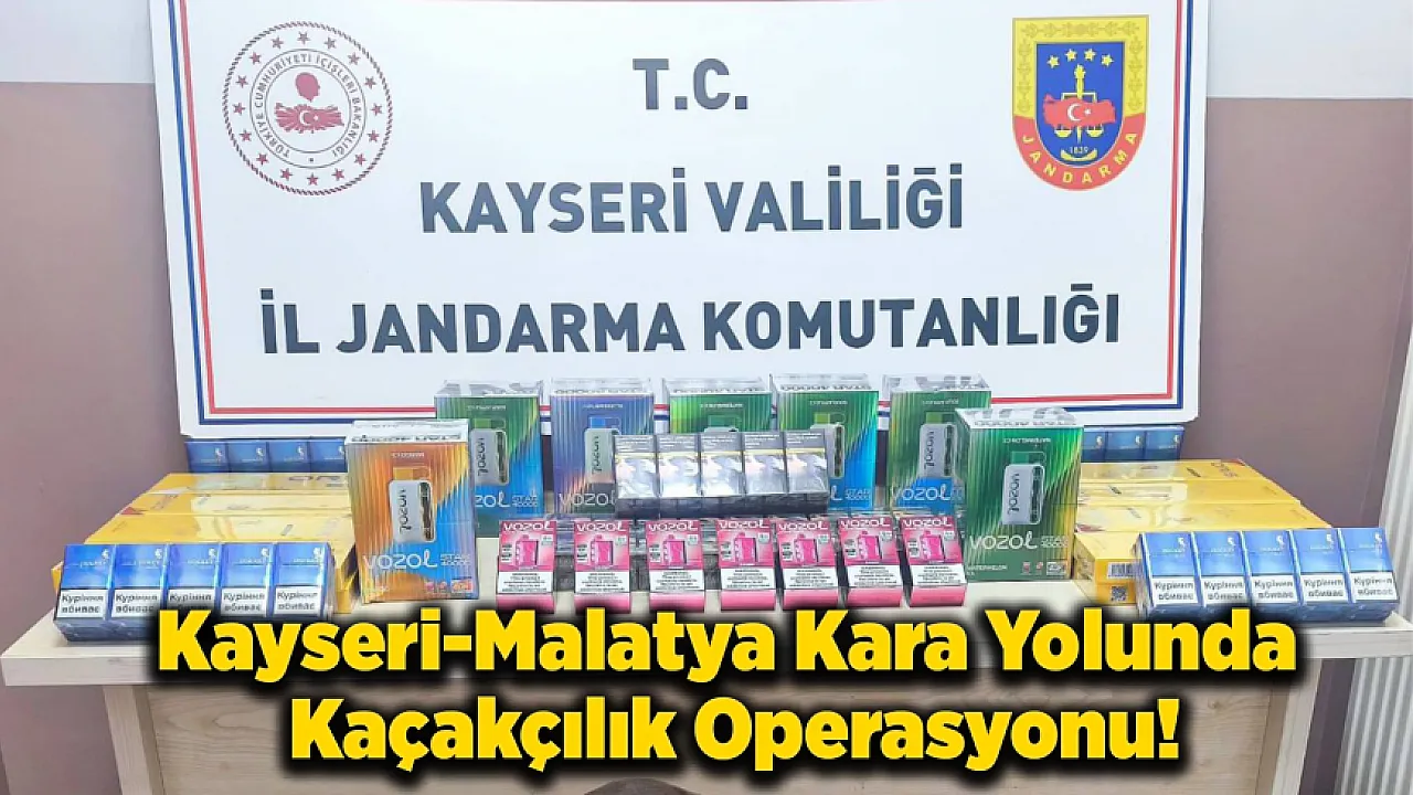 Kayseri-Malatya kara yolunda gerçekleştirilen kaçakçılık operasyonunda 250 paket bandrolsüz sigara ve 77 elektronik sigara ele geçirildi, 2 sürücü gözaltına alındı.