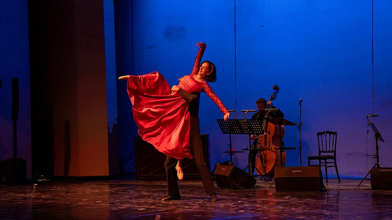 Malatya Kongre ve Kültür Merkezi Kemal Sunal Salonu’nda sahnelenen Antalya Devlet Opera ve Balesi’nin “Aspendos Ensemble” gösterisi, tango müziğinin büyüleyici atmosferini sanatseverlerle buluşturdu. Solist Nurdan Küçükekmekçi’nin yorumlarıyla hayat bulan eserler, piyano, viyolonsel ve kontrbastan oluşan trio eşliğinde seslendirildi. Yerli ve yabancı tango parçaları özgün düzenlemelerle sunulurken, dansçıların koreografileri geceye görsel bir şölen kattı.