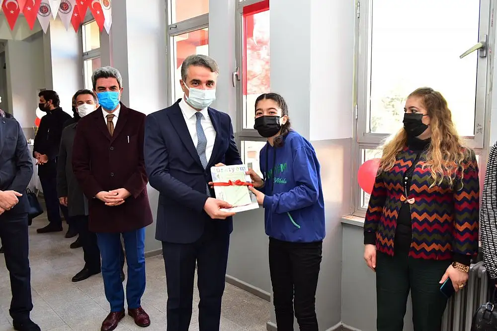 Proje kapsamında Türkiyem Ortaokulu’na kazandırılan kütüphanenin açılışında konuşan Vali Aydın Baruş, toplam 640 okul ve eğitim kurumundan 90’ında Kütüphane bulunmadığını, bu proje kapsamında 86’sının tamamlandığını ifade ederek, “Bu kampanya çerçevesinde ilimizde 90 okul kütüphanesi kurulma kampanyası ekim ayında başlatıldı. Bugüne kadar da bunların 86’sı tamamlandı. 31 Aralım itibariyle de kalan dördü de tamamlanmış olacak. Bunlarda 59’u Milli Eğitim Bakanlığı’nın genel bütçesinden, 31’i de Avrupa Birliği tarafından yürütülen Piktes projesi ile karşılanıyor. Artık 640 eğitim kurumumuzdan hiç biri kütüphanesiz kalmamış olacak. Burada en büyük kazanım çocuklarımızın, öğrencilerimizin. Çünkü çocuklarımız kütüphanelerden gerektiği gibi yararlanma konusunda imkansızlık nedeniyle bu imkanlardan mahrum kalırlarsa bu hepimizin kusuru ve eksiği olarak kalacaktı. Bu proje kapsamında gerçekleştirilen çalışmalar ile birlikte yeni açılan kütüphanelerimizde yaklaşık 50 bin kitap temin edildi. Böylece çocuklarımızın yararlanabileceği gerek kaynak kitap, gerek se günlük hayatta okuyabileceği kitaplar anlamında ciddi bir kaynak takviyesi yapılmış oldu” dedi