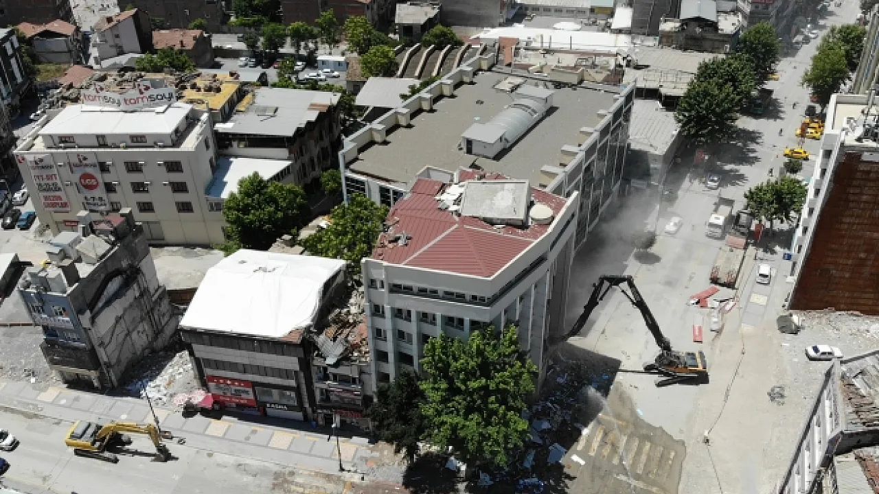 Şehir merkezinde gerçekleştirilecek yıkım işlemlerinin bir an önce tamamlanıp kent merkezinin yeniden ayağa kalkması için çalışmaların hızlı bir şekilde sürdürülmesi beklenirken yaklaşık 1 saat çalışma sonucu yıkım işlemine ara verildi.
