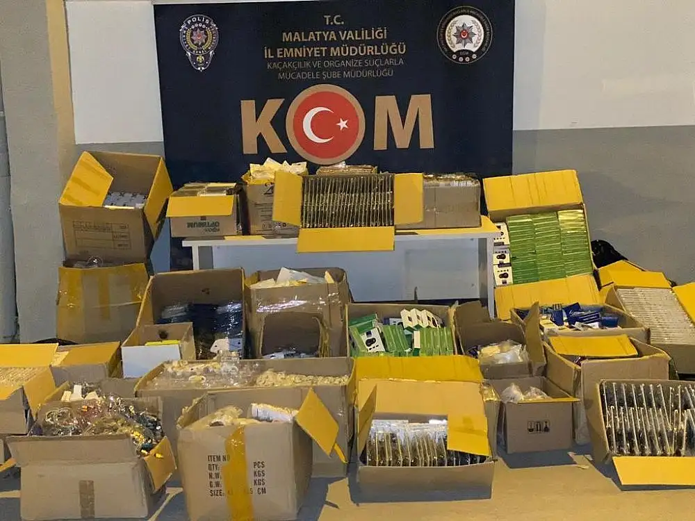 Malatya'da binlerce kaçak telefon aksesuarı ele geçirildi