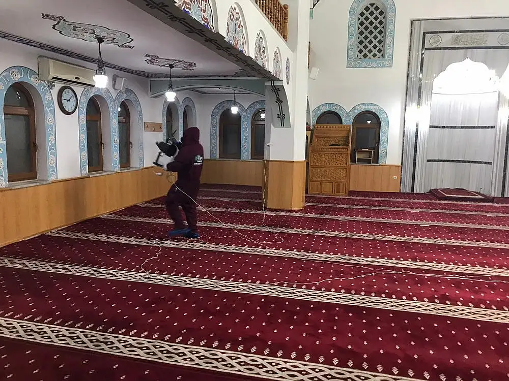 Çin’in Wuhan kentinden geçen yıl dünyaya yayılan ve Türkiye’de de etkili olan yeni tip korona virüsüne karşı camilerde dezenfekte çalışmaları devam ediliyor. Malatya’da özel bir temizlik şirketi tarafından Malatya’daki camilerde ücretsiz olarak dezenfekte gerçekleştiriliyor. Battalgazi İlçesi Başharık Mahallesi’ndeki Miraç Camii Din Görevlisi Recep Kök, camide yapılan dezenfekteden dolayı teşekkür edip, “Temizlik şirketi yönetimine teşekkür ediyorum. Ücretsiz bir şekilde gelip camiyi dezenfekte yapıyorlar. Allah razı olsun” ifadelerini kullandı.