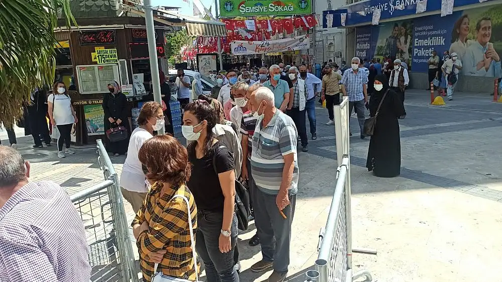 Kurban Bayramı’nın 9 gün tatil olmasının ardından Malatya’da çarşı ve pazarlarda bayram öncesi yoğunluk oluştu. Bayrama günler kala alışverişe çıkan kalabalık daha da artarken, haftanın son mesai gününde ise banka ve PTT önlerinde metrelerce uzayan kuyruklar oluştu. Sabahın erken saatlerinde başlayan kuyruk gün boyu devam etti. Banka ve postane önlerinde oluşan kuyruklarda ise insanların sosyal mesafeye riayet etmediği gözlendi. Vatandaşlar, Kurban Bayramı ve 9 günlük tatil öncesinde işlerinin halletmek zorunda olduklarını, bu nedenle dışarı çıktıklarını dile getirdi.