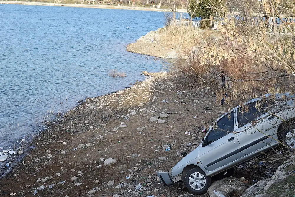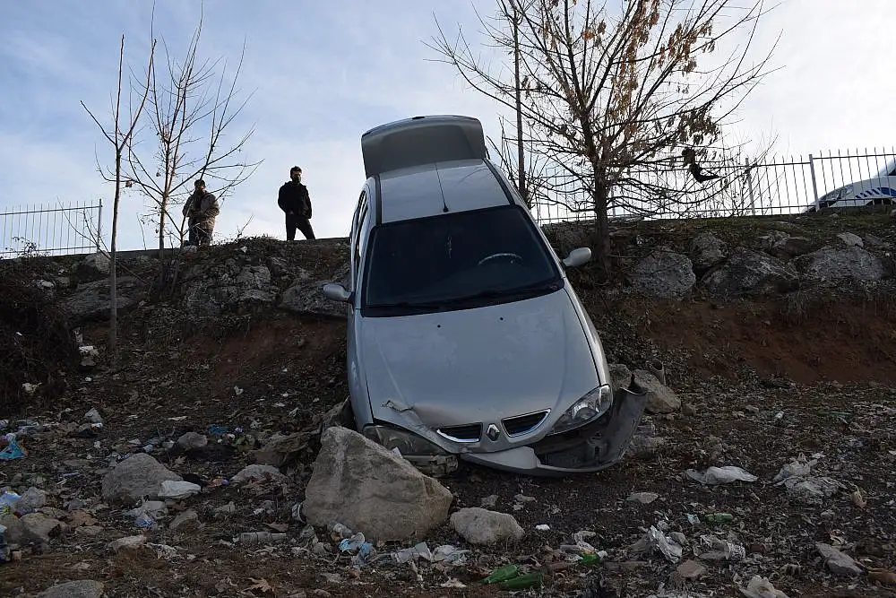 Malatya'da içerisinde 3 kişinin bulunduğu araç, direksiyon hakimiyeti kaybolduktan sonra üç metrelik şarampolden aşağı yuvarlandı. Aracın uçurumun dibindeki gölete düşmesini ise yol kenarındaki kayalar önledi.