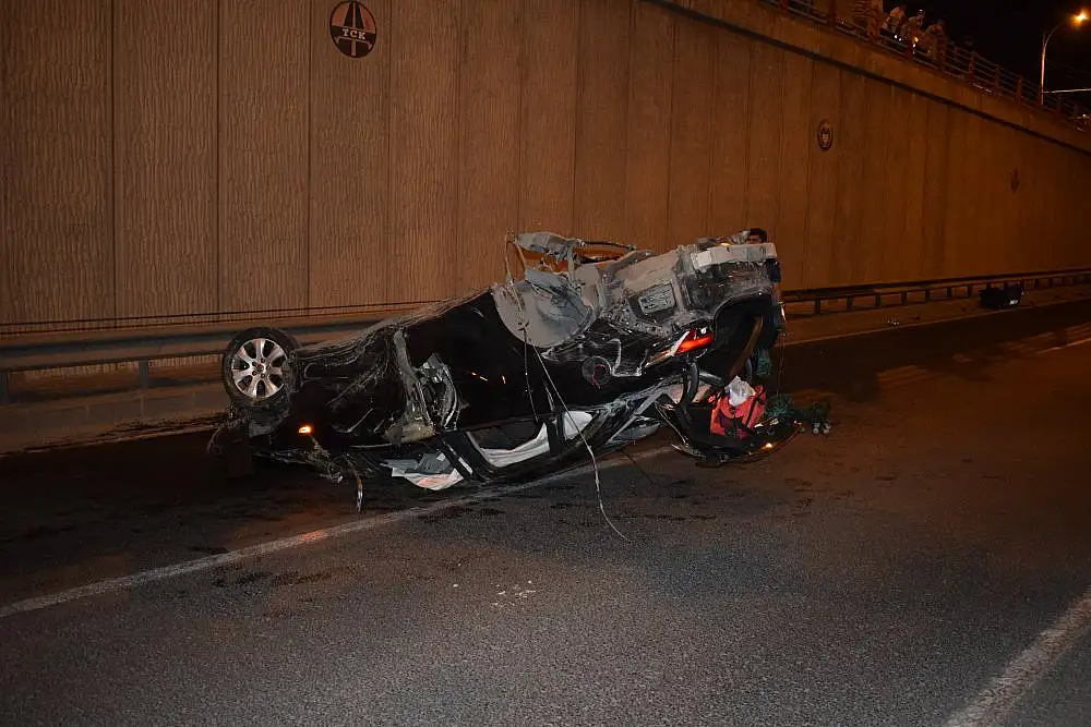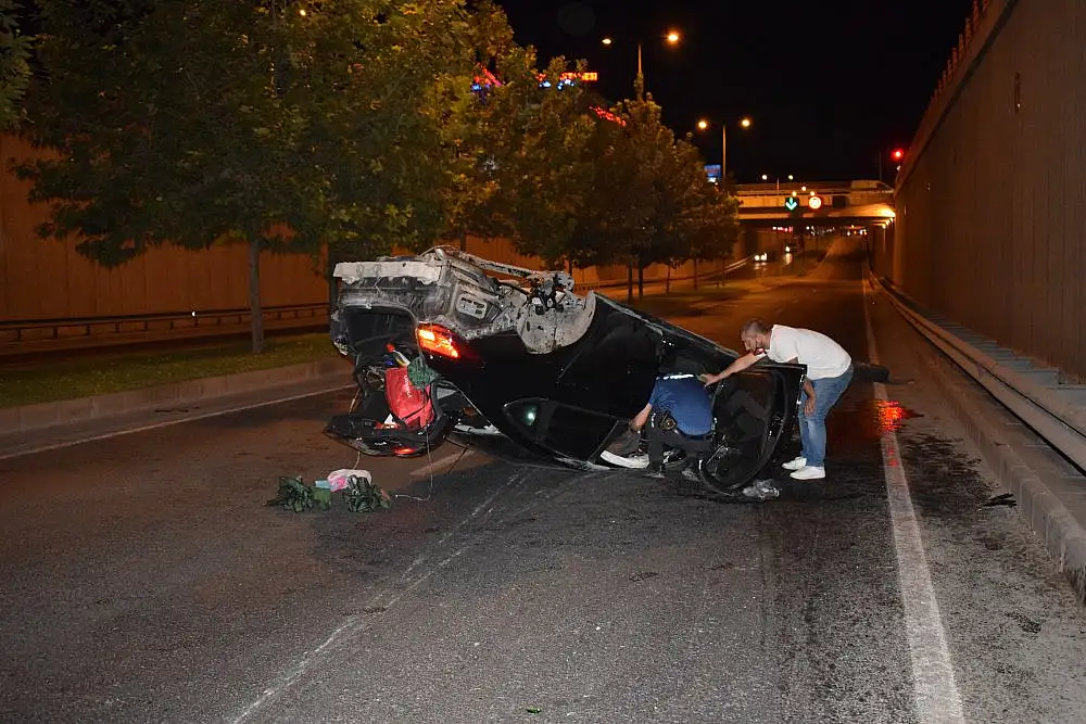 Çarpmanın etkisiyle takla atarak savrulan otomobil yol üzerinde ters dönerek durdu. Feci kazada araçtan fırlayan S.D. ile sürücü F.K. ağır şekilde yaralandı.