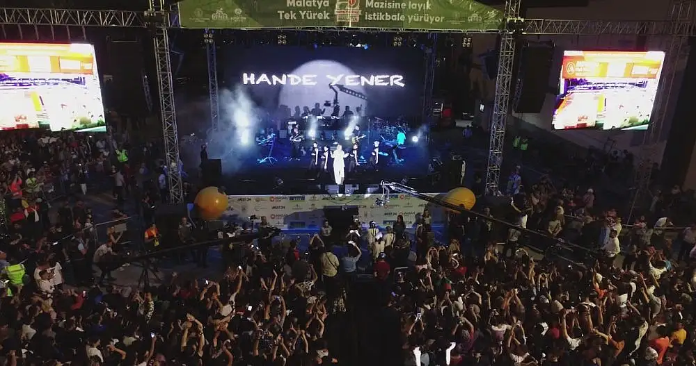 Malatya’da olmaktan mutlu olduğunu belirten Hande Yener ise, “Çok güzel bir tablo var bunu bilerek geldik. Çok güzel bir enerji. Bu enerji kaç gündür hissediliyordu. Malatya konserini iple çekiyorduk bütün ekibimizle. Sayın Başkanımıza selamlar ve saygılar sunuyorum” dedi.