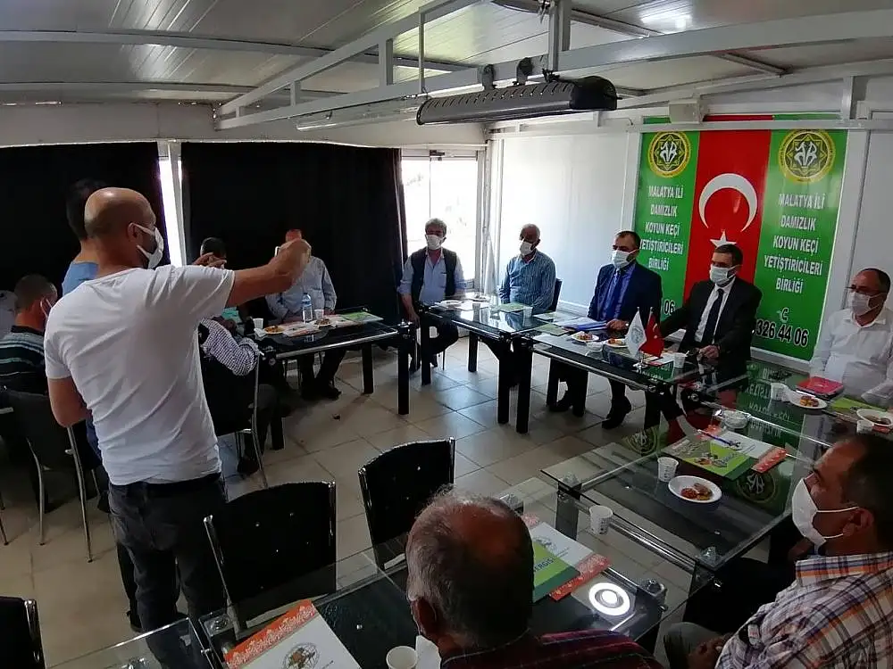 Toplantıda konuşan Malatya Damızlık Koyun Keçi Yetiştiricileri Birliği Başkanı İhsan Akın, “Bu gün burada toplanmamızın asıl amacı burada Malatya’yla ilgili projemiz hayata geçti. Bu projemiz yıllardır yetiştiricilerimizin, üreticilerimizin onlarca dilekçe verdiği yaylalarındaki temel ihtiyaçlarının giderilmesi sulak, tuzlak ve gölgelik bunlarla ilgili. Bu projede öncelikli olarak acil olan beton sıvatlar ve saçtan yapılan sıvatların dağıtılmasıyla ilgili. Bunların bir an önce hazırlanması ve yetiştiricilere teslim edilmesiyle ilgili. Burada asıl amacımız yetiştiricilerimizin özellikle galvanizli saçlara küçük bir katkı sunarak bunları alıp direk kullanabilmeleri ve aracıyla su olan yere taşıyabilmeleri. Diğeriyse yine geçmişte dağıttığımız ve yine ortak noktalarda kullanılacak olan beton sıvatlarımız. Bunlarla ilgili toplantımızı yaptık. Taleplerimizi topluyoruz. Yaklaşık 1 hafta içerisinde de bu talepleri toparladıktan sonra geçmişteki taleplerle birlikte yetiştiricilerimize yaylalarında, meralarında, ilçelerinde bunları teslim etmeye başlayacağız. Burada projemize destek olan Tarım Bakanımıza, emeği geçen bürokratlarımıza, tarım il müdürümüze ve ekine teşekkür ediyoruz. Burada acil olan yer neresi varsa muhakkak bizle müracaat etmelerini sağlayın. Bunları bizlere talep şeklinde veya tarım ilçe müdürlüklerine bir an önce yapsınlar. İnşallah bunları bir an önce dağıtalım. Bu sıvatlarla ilgili sorunlarımızı çözelim” diye konuştu.