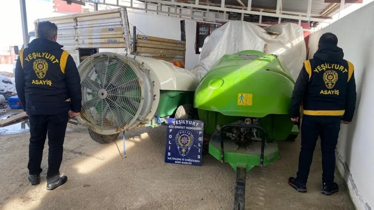 Yeşilyurt ilçesinde farklı adreslerde bir kamyonet ile birlikte iki ilaç atma ve bir pres makinesi çalandı. Olaylarla ilgili çalışma başlatan ekipler kimlikleri belirlenen hırsızlık zanlısı 3 kişiyi yakalayarak gözaltına alınırken, çalıntı malzemeler Tepeköy Mahallesi’nde bulunarak muhafaza altına alındı.
