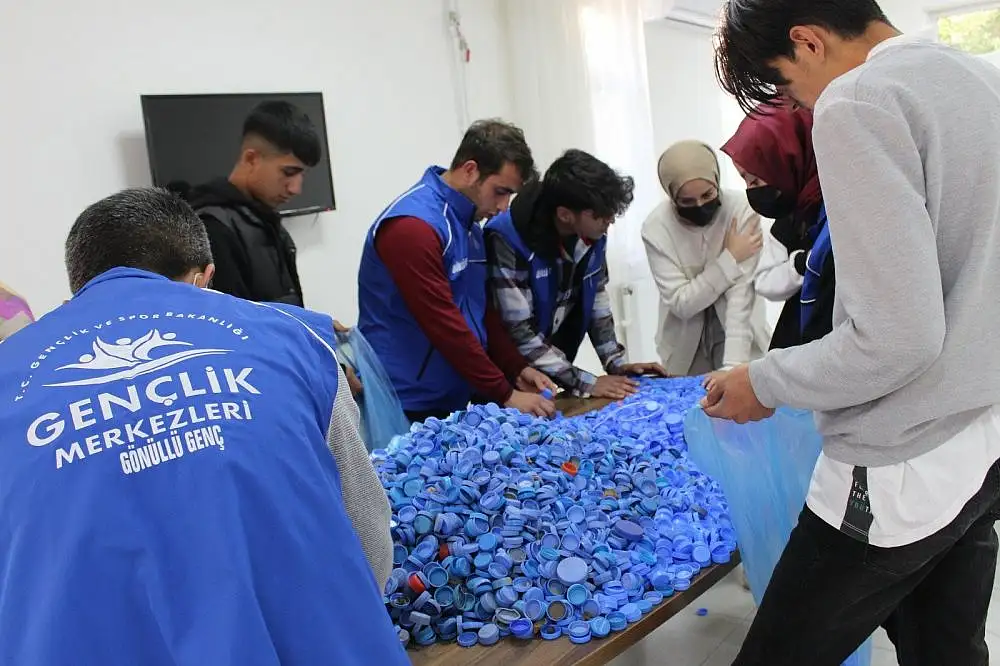 Malatya'da gençler, engellilere yardım için mavi kapak toplama kampanyası başlattı.
