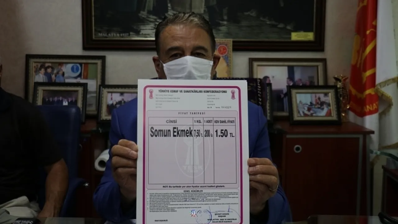 Malatya Esnaf ve Sanatkarlar Odalardı Birliği (MESOB) Başkanı Şevket Keskin, oda binasında yaptığı basın açıklamasında, halen 200 gramı 1 TL 25 kuruştan satılan somuna 25 kuruş zam yapıldığını söyledi. MESOB Başkanı Şevket Keskin, bir haftadır esnaflarla birlikte somun ekmek için fiyat tarifesini görüştüklerini vurgulayarak, "Elektrik, doğalgaz, su, un fiyatlarına, BAĞKUR'a gelen zamlarla esnafımız bir hayli sıkıntıya girdi. Yapmış olduğunuz incelemelerde biraz daha esnaf için değil millet için pandemi sürecinden dolayı biraz daha özveride bulunduk. 200 gram somun ekmeğin fiyatını 1,5 lira olarak belirledik. Hep birlikte karara bağladık. Hayırlı olsun" diye konuştu.