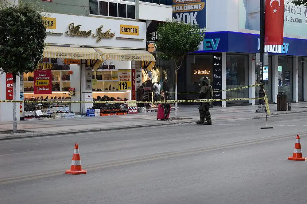 Edinilen bilgilere göre, İnönü Caddesi üzerinde kaldırımda şüpheli bir valiz gören vatandaşlar durumu polis ekiplerine bildirdi. Kısa sürede olay yerine gelen polis ekipleri, kapalı olan valizin incelenmesi için bomba imha ekibini olay yerine çağırdı. Yol yaya ve araç trafiğine kapatılarak, güvenlik çemberine alındı. Olay yerine gelen bomba imha uzmanı ekip, valizin çevresinde yaptığı incelemenin ardından fünye yerleştirerek kontrollü patlatma gerçekleştirdi.