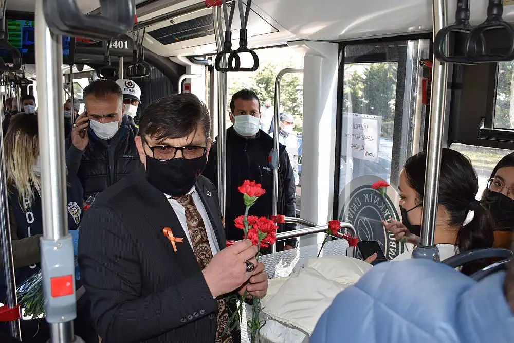 Demetimler de 8 Mart Dünya Kadınlar Günü dolayısıyla kadın yolculara da karanfil dağıtan İl Emniyet Müdürü Dağdeviren, şiddetten uzak kadınların baş tacı edildiği bir gelecek ümit ettiklerini dile getirdi.
