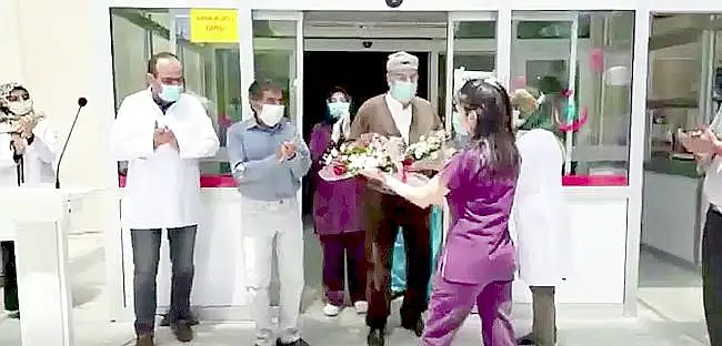 2 hastanın çiçeklerle uğurlanmasını ardından hastane çalışanları kırmızı-beyaz balonları “Hayat Bayram Olsa” şarkısı eşliğinde gökyüzüne bıraktı.