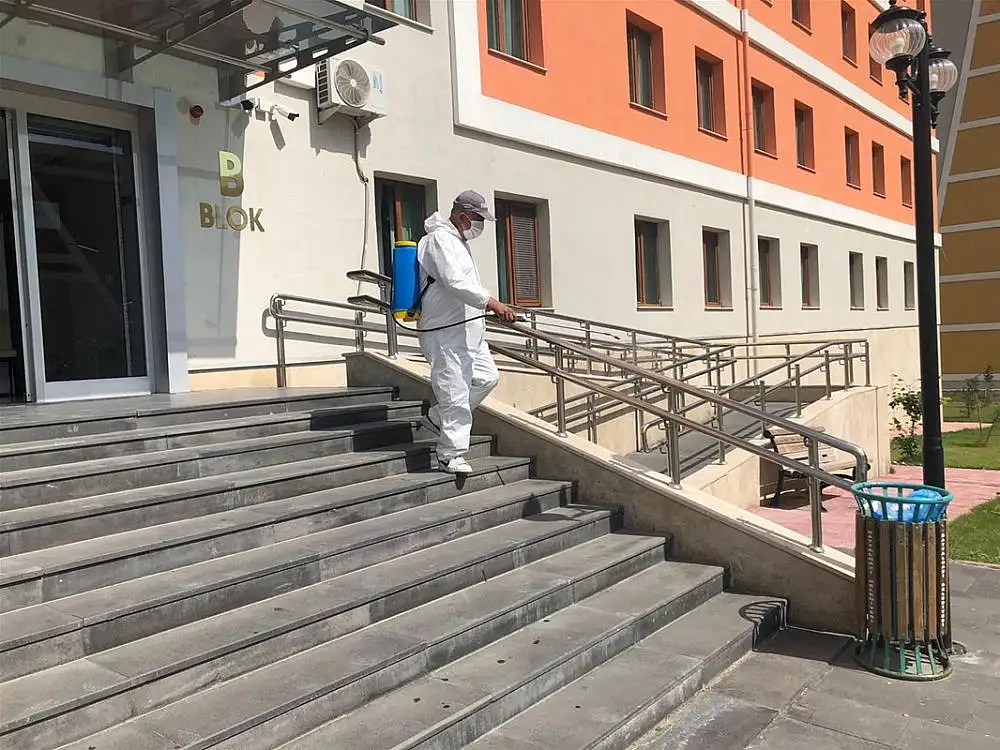 Yeni tip korona virüs (Covıd-19) salgını ile mücadele kapsamında vatandaşların yurt dışından geldikten sonra ilk 14 gün kaldıkları yurtlarda dezenfekte işlemleri yapıldı.