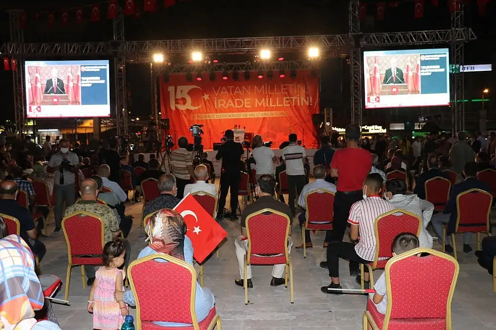 Programda, Cumhurbaşkanı Recep Tayyip Erdoğan’ın 15 Temmuz Ulusa Sesleniş konuşması da meydanda bulunan LED ekrandan canlı olarak izlendi. Program şiirlerin okunması ve mehteran takımının verdiği konserle devam etti.